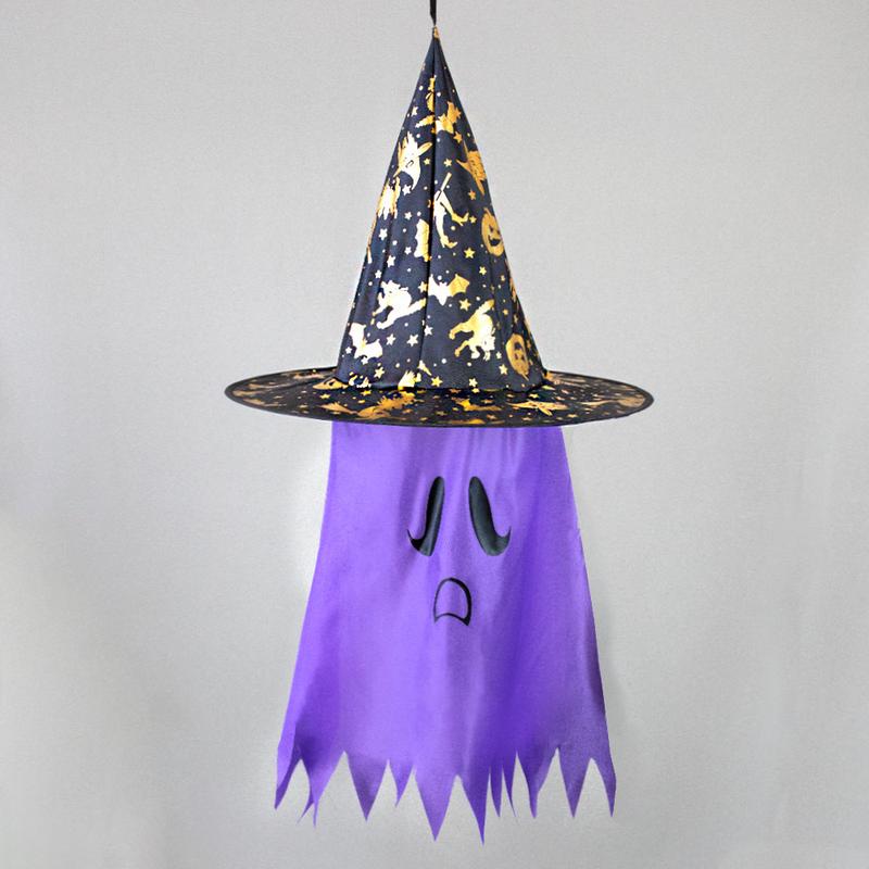 Декор подвесной привидение в шляпе 70 см (фиолетовый)
