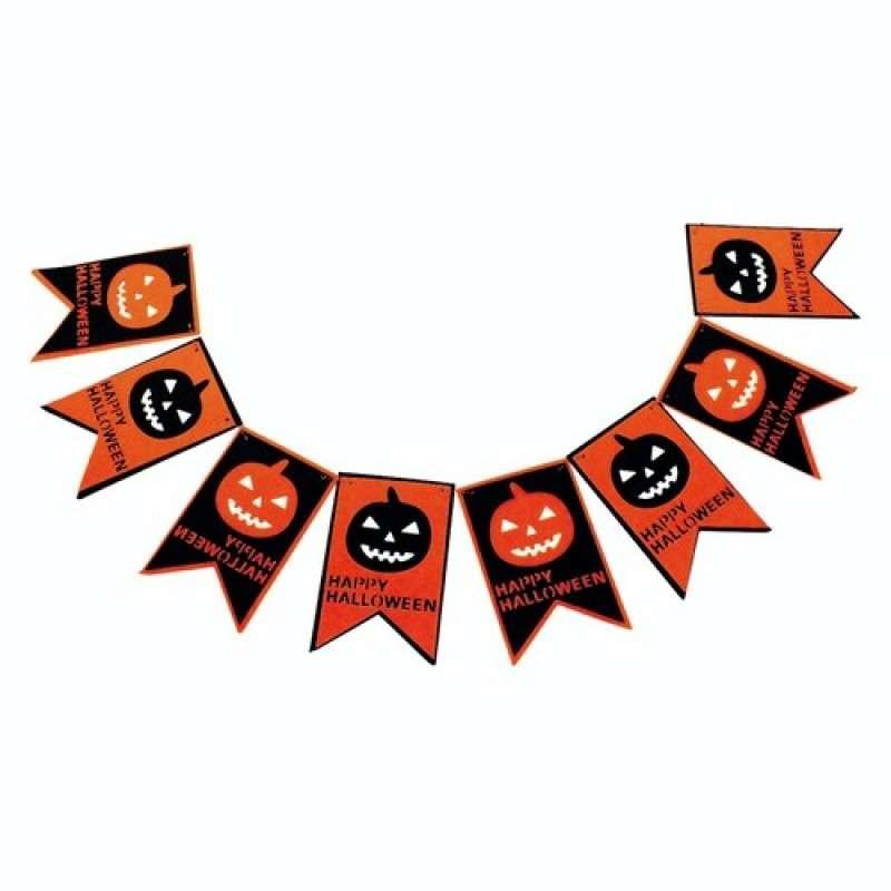 Гирлянда Тыквы Happy Halloween Оригинальная гирлянда, которая состоит с 8 флажков с надписью "Happy Halloween" и домом с окнами поможет декорировать помещение, окунуться в атмосферу праздника Хэллоуин. Длина гирлянды - 260 см, флажок - 15,5 х 24 см.