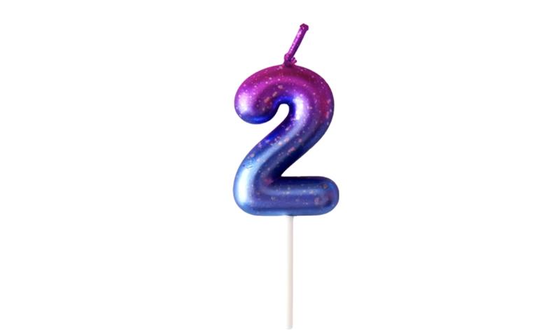 Свеча для торта цифра «2» сине-фиолетовый металлик