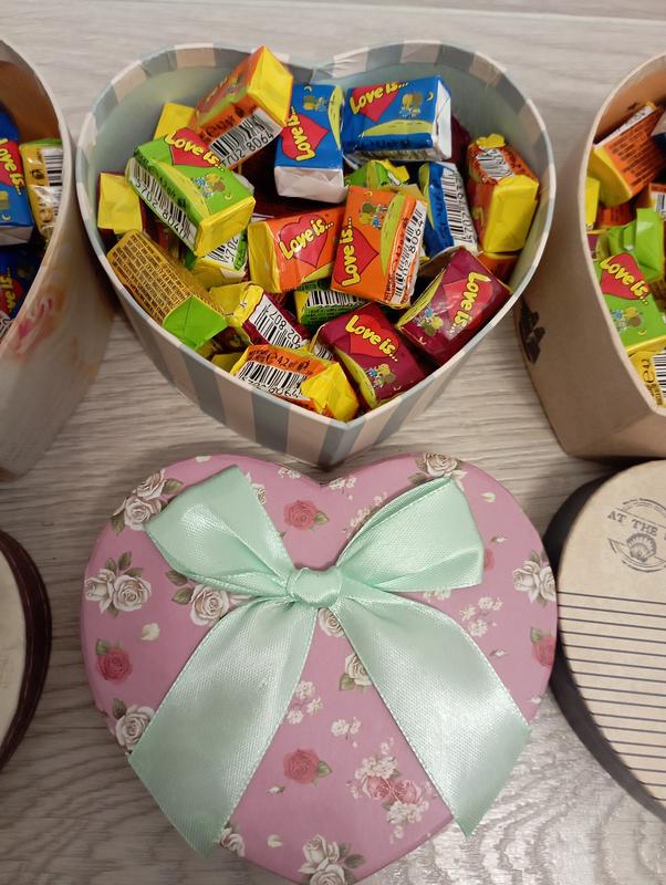 Подарочные коробочки в виде сердца со жвачками внутри. На 50,75,100 штук. Жвачки love is. Оригинал из Турции. Есть 5 вкусов. Коробочка на 50шт (микс)- 280 грн. Коробочка на 75 шт ( микс)- 360 грн. Коробочка на 100 штук (икс)- 400 грн. Есть также самодельные коробочки в виде сердца на количество жвачек от 150-1000 штук, цены уточняйте, пожалуйста. Отправка товара после оплаты на карту