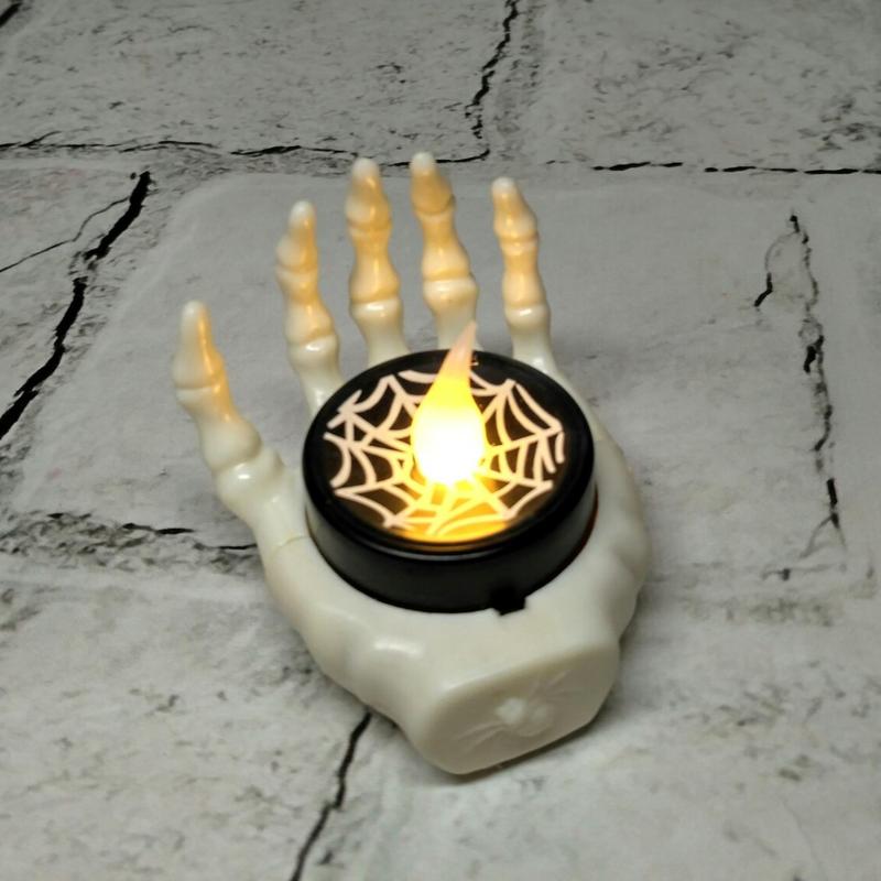 Свеча электронная led рука скелета 5х5 см декор на хэллоуин белая