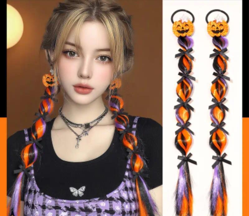 Две плетенные косы для волос на хелловин с украшениями в виде тыквы, паука