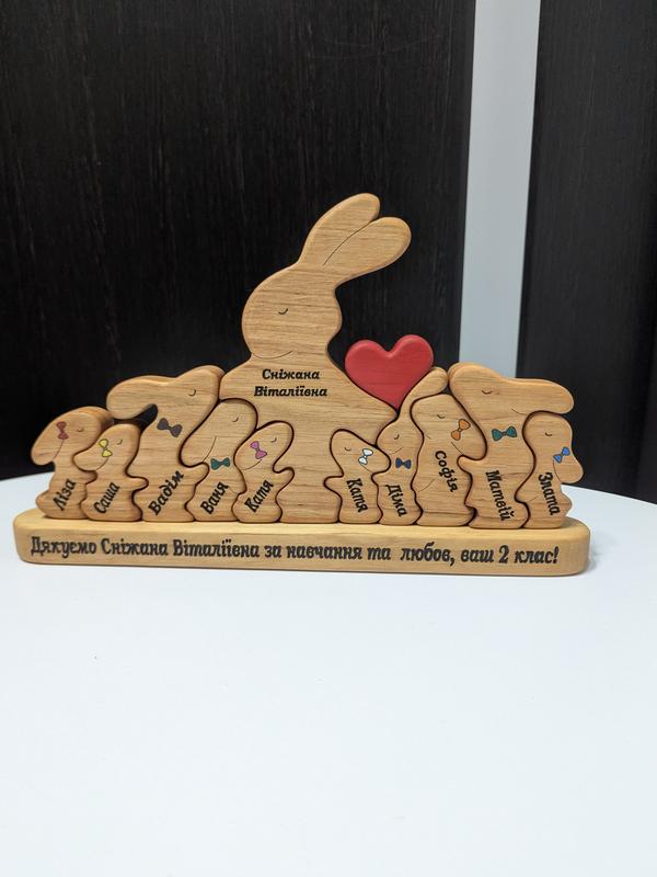 Именные Семейные Пазлы Статуэтки Сувениры Милый Подарок Цена от 300 до 1000 грн Семейные Пазлы в виде зверюшек создаст уникальный и теплый акцент в вашем доме и будет оградой вашей семье| е Вариантов оформления очень много - ПОДБЕРМО каждому Каждое животное символизирует члена вашей семьи, а их имена, выгравируемые на фигурках, делают это изделие по-настоящему персональным. Красное сердце в центре символизирует безграничной любви, объединяющей вас. Изготовленный из натурального дерева, этот подарок станет отличным дополнением к любому интер| уру и будет напоминать о тепло семейных связей. Идеально подходит для украшения гостиной, спальни или детской комнаты. Идеальный подарок для мамы, папы, коллеги, сестре, шефа, бабушки, дедуша, брагу, другу, подруге,счастливику, дядьку, тетке на Новый год, Рождество, День Матери, День отца, дата свадьбы, новоселье, День Валентина, 8 марта, корона, Имени, Палантины, Чера, день победы, троица, день семьи, Крестины, День Рождения, день Ангела или просто как милый и теплый сувенир знак внимания вместо банальных подарков или цветов Статуэтки стоят самостоятельно, их можно складывать и собирать. Качественная отделка и шлифовка без острых углов. Материал - ольха камерной сушки. Покрытие - масло. Все Экологически и безопасно Подарочная упаковка с натуральным наполнителем (стружка) ощущение настоящего леса из коробки