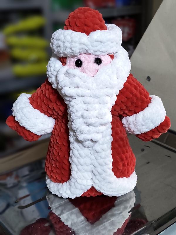 Дед Мороз ручная работа нитки плюш длина 21 см