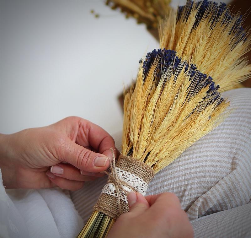 Украинский рождественский предохранен. Из колисков отборной пшеницы изготавливают дедуха или рождественского снопа, который символизирует связь поколений, изобилие, благополучие. На праздник это символблагодара рода, земли, это предохраняет для семьи. Для этого дедуха я использовала костяшки и выращенную собственноручно лаванду, Колоски пшеницы для изобилия, лаванда для очистки, защиты оселі . Также лаванда и колоски, - красивое эстетическое сочетание и нежный натуральный аромат.