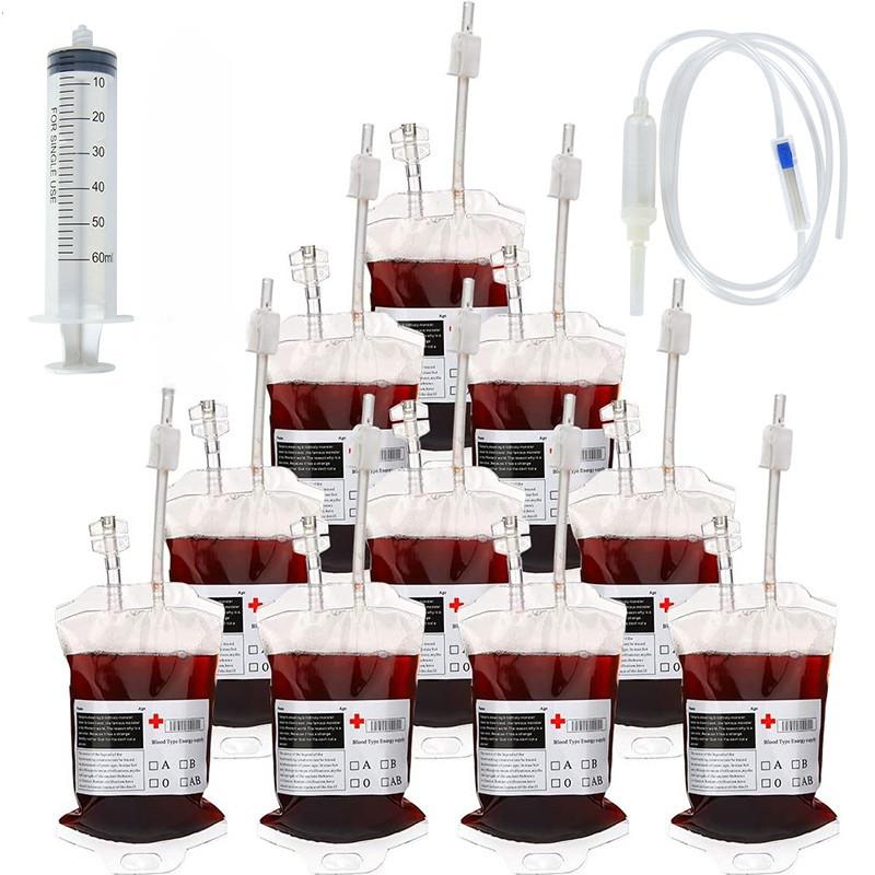 Пакет капельница 300мл для напитков + шприц 60мл Пакет для крови на Хэллоуин. Капельница 300мл - наполняется вином, соком и другой жидкостью Пищевой материал хорошего качества, без привкуса или стороннего запаха Цвет: Прозрачный Комплект: капельница + зажим (чтобы содержимое не выливалось) + наклейка Идеально подходит к вампирской вечеринке, Хеллоуину или любого другого тематического праздника. Для реалистичности - каждый пакет можно промаркировать специальными бирками (правда, бирки на английском языке..) Можно использовать любые напитки - сок, вино, коктейль или любой другой напиток. Характеристики Материал: пластик; Емкость: 300 мл; Вес: 100 г; Размер: 18.5 х 10 х 0,2 см.
