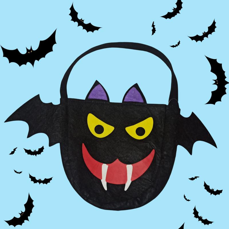 Сумка с фетра летучая мышь-вампир для конфет на хеллоуин 20х20см черный