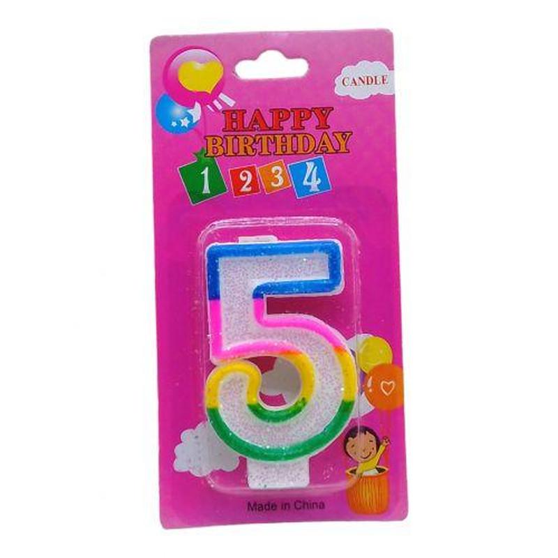 Свеча-цифра цветная с блестками "5" 6 см