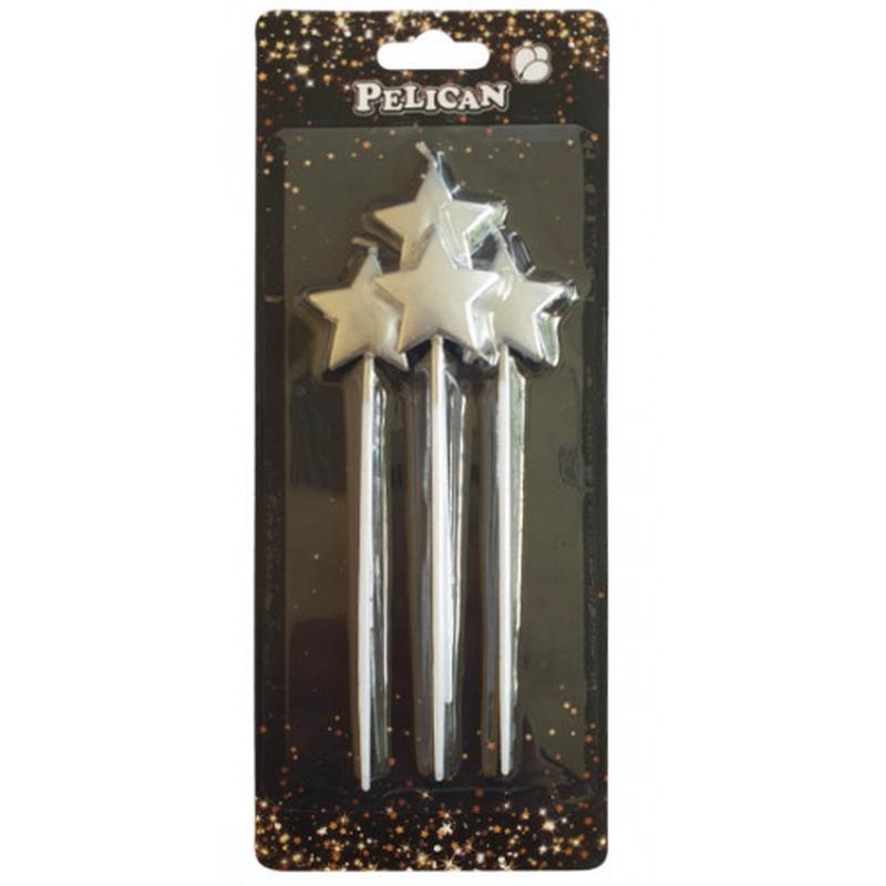 Набір свічок в торт "зірочка на паличці" 4шт срібло 868612