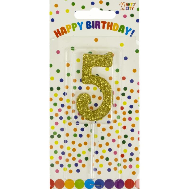 Свічка в торт "Цифра-5" золото на паличці(12). Святковий набір свічок для торта, чудовий вибір для створення особливої атмосфери.