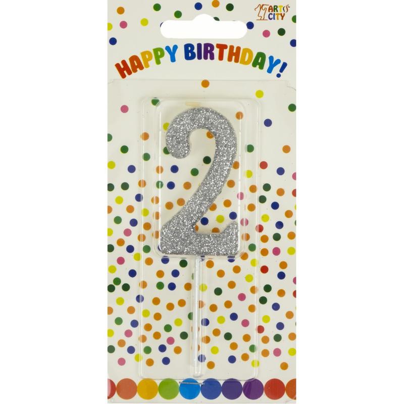 Свічка в торт "Цифра-2" срібло на паличці(12). Святковий набір свічок для торта, чудовий вибір для створення особливої атмосфери.