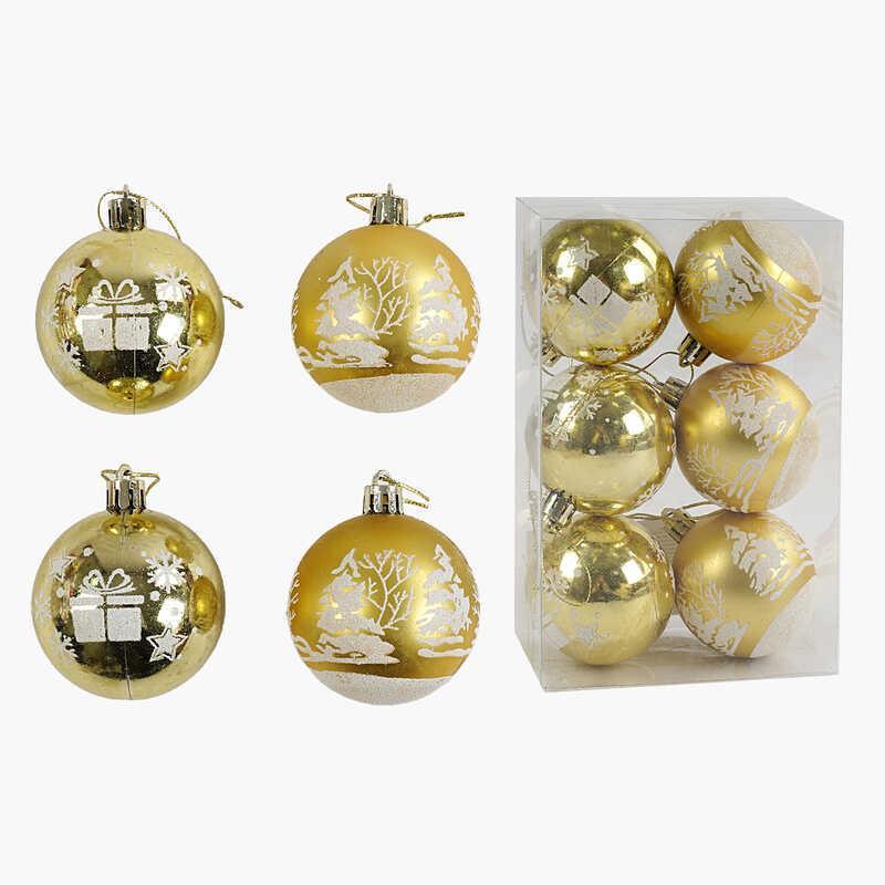 Новогодние шары для праздничного декора Сделайте ваш праздник еще ярче с набором новогодних шаров C 67664 (120). Этот комплект состоит из шести элегантных шаров диаметром 5,5 см, которые прекрасно подойдут для оформления елки или праздничного стола. - Вид: шар - Диаметр: 5,5 см - Материал: пластик - Декор: глиттер для дополнительного блеска - Количество в упаковке: 6 штук Не упустите возможность добавить эту яркую деталь в ваш новогодний декор!