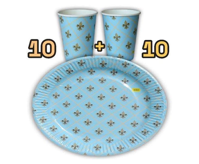 Набор праздничной одноразовой посуды с принтом 10 тарелок 10 стаканов ламинированные