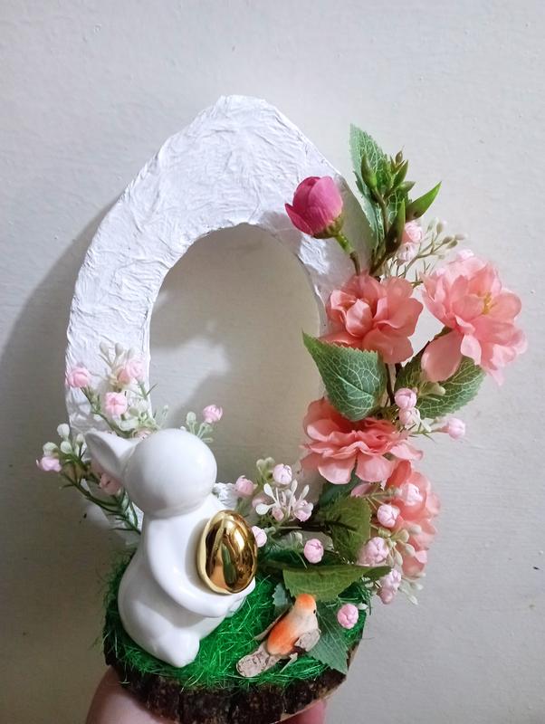 крупной композиция с яйцом,керамическим кроликом и цветами. ручная работа высота: 22 см