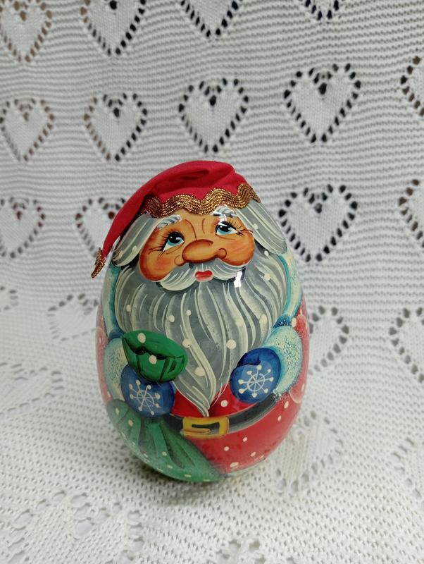 Сувенирное яичко Дед Мороз, новая, ручная роспись, дерево, в середине есть калатушка очень приятно звучит.