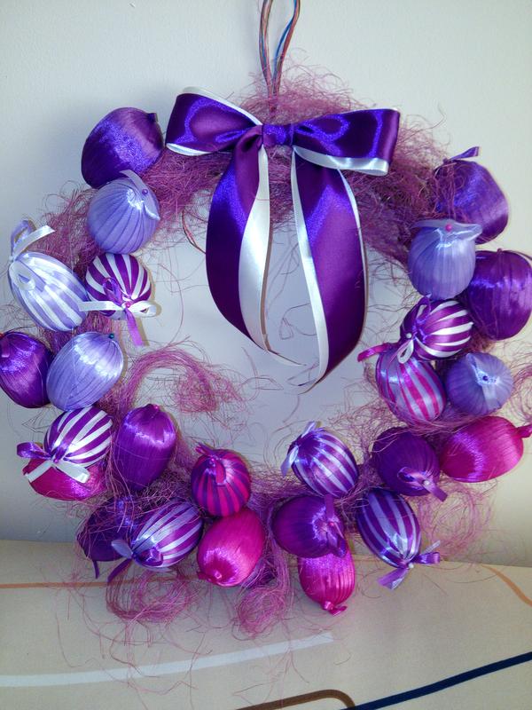 Пасхальный венок - эксклюзивный декор к празднику. Основа венка - лоза винограда Диаметр - по внешнему краю 43 см Количество яиц - 26 шт Яйца из пенопласта, декорированные атласной лентой Возможно добавить в венок гирлянду с лёд лампочками Много интересных новинок - смотрите объявления автора. Спасибо, что зашли.