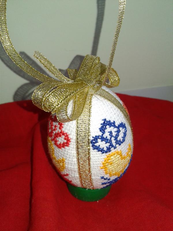 Декоративное яйцо,вышитое мулине с атласной ленточкой