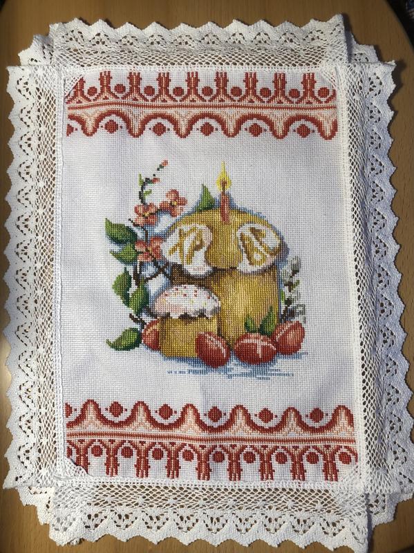 Пасхальний рушник вишитий хрестиком. Розмір 28 см х39 см. Вишитий нитками муліне DMC, зворот підшитий атласом.