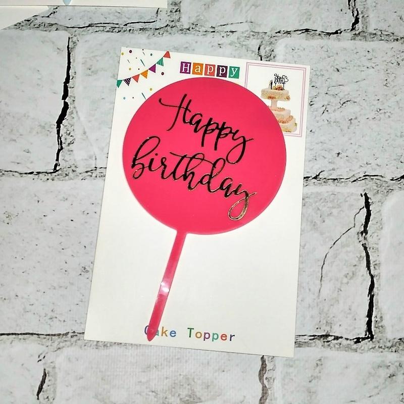 Топпер в торт happy birthday, розовый