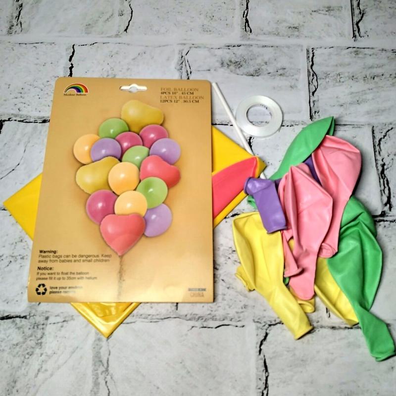 Набор-фонтан из воздушных шариков. Набор воздушных шаров - фольгированные сердца и латексные шарики однотонные. Такой набор станет отличным дополнением к подарку на День рождения, 14 февраля, 8 марта, Девичник, Свадьбу. Прекрасно сможет украсить любую фотозону или помещение! В набор входит: - Шар латексный однотонный (разноцветные) - 12 шт, 30 см (12 дюймов) - Шар фольгированный Сердце, желтый - 2 шт, 45 см (18 дюймов) - Шар фольгированный Сердце, розовый - 2 шт, 45 см (18 дюймов) - Лента Подойдут для надувания воздухом или гелием.
