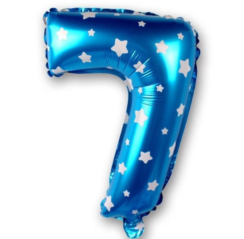 Шарик цифра 7 фольгированная со звездочками 32 дюйма голубой