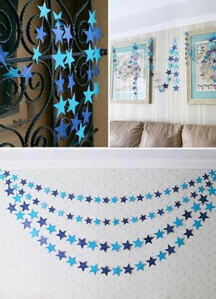 Гирлянда звездочки на нитке 4 м на 7 см сине-голубой