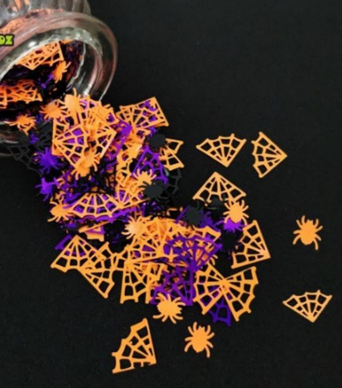 Конфети Хэллоуин - 7687. Цвет: разноцветный. Размер: размер паутины 2,5 на 1,5 см, размер паука 1 см. Вес: 15 г.