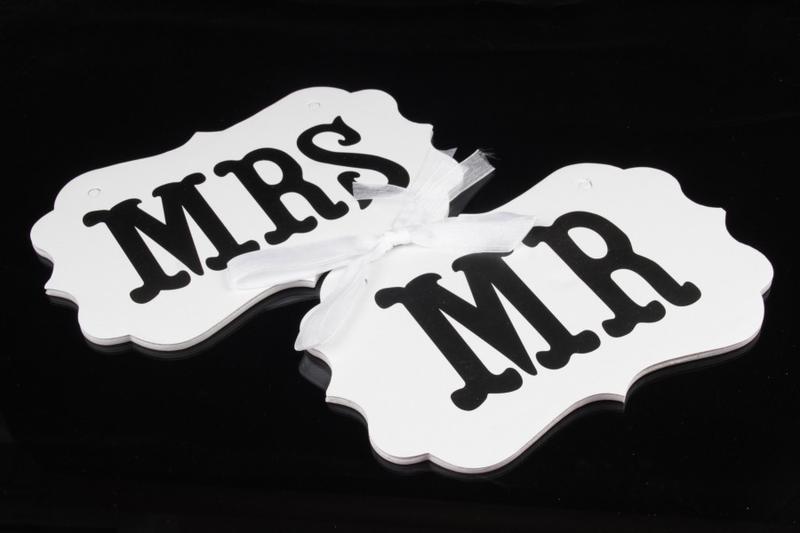 Таблички "Mr&Mrs;" белые (2 шт.) - Длина 25 см - Ширина 5 мм - Высота 16 см - Материал картон, полипропилен