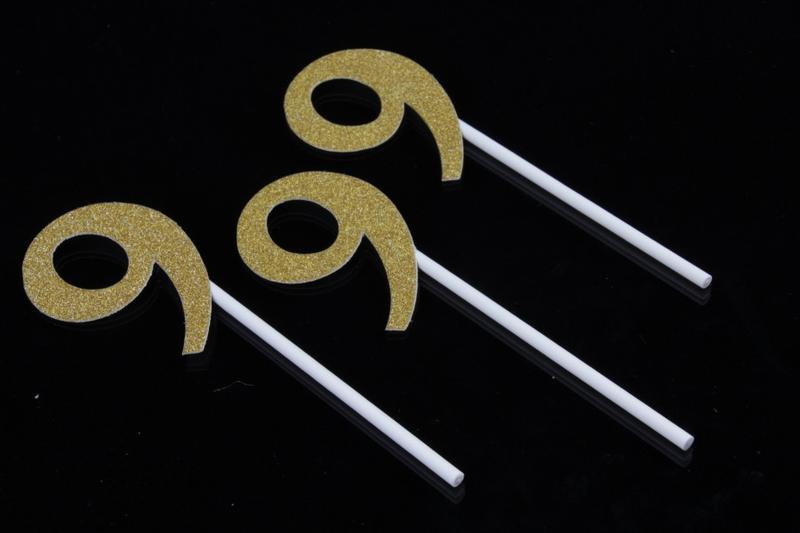 Цифра картонная на палочке, под золото (9) - Материал бумага, картон