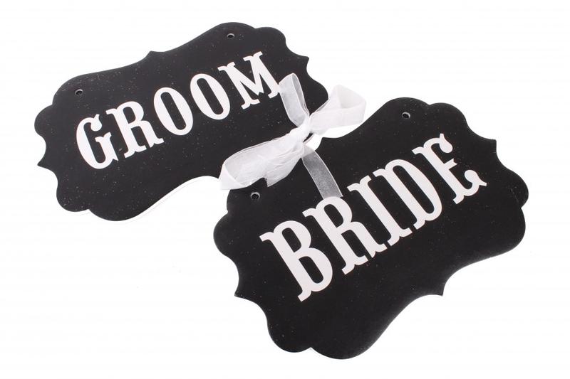 Таблички "Bride&Groom;" черные (2шт.) - Длина 26,5 см - Ширина 5 мм - Высота 17 см - Материал картон,полипропилен