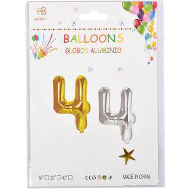 Шарик фольгированный цифра 4 золото Размер 40*45см.