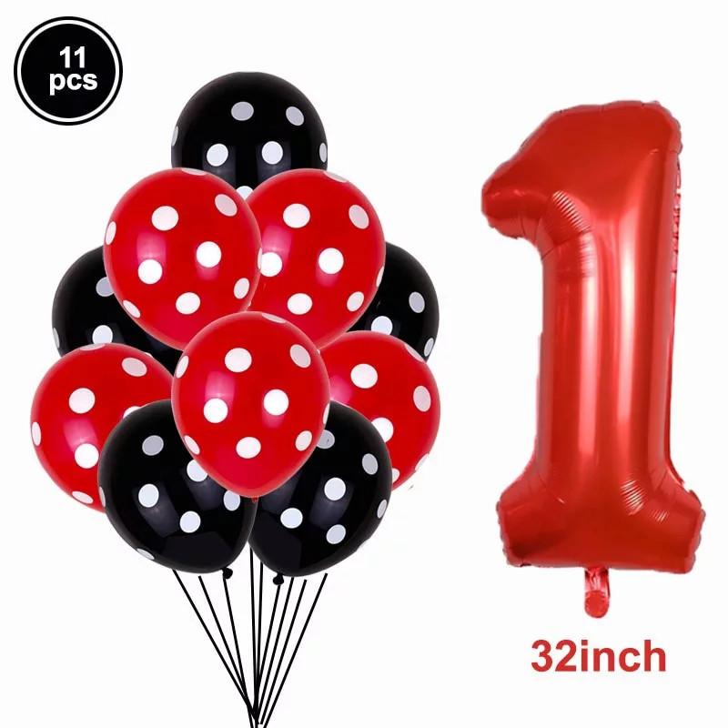 Шарики леди баг и шарик цифра 1 11 штук 32 дюйма красно-черный