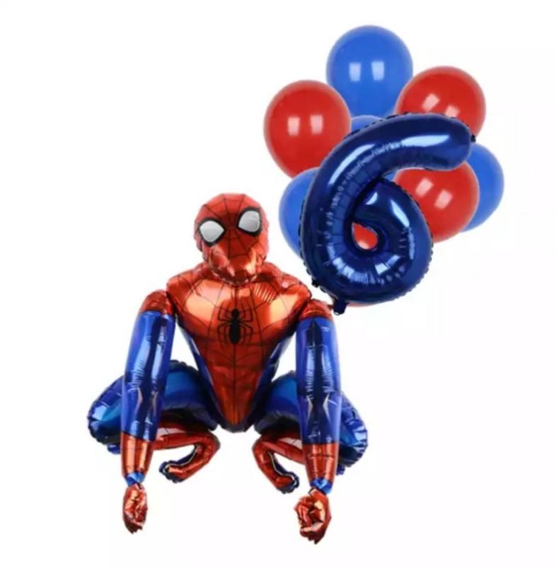 Шарики спайдермен и шарик цифра 6 фольгированные 10 шариков 32 дюйма разноцветный