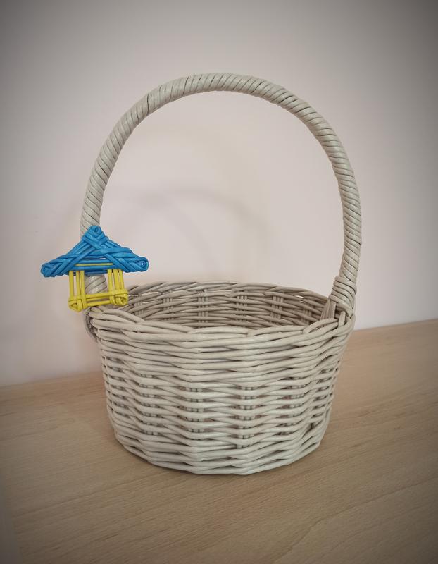 Кошик ручної роботи, виготовлений в техніці плетіння з паперової лози . Міцний, легкий, не боїться вологи. При роботі використовувалися лише екобезпечні матеріали. Можливе виготовлення в іншому кольорі та розмірі. Розмір діаметр 22см, висота без ручки - 11см, з ручкою - 29,5см.