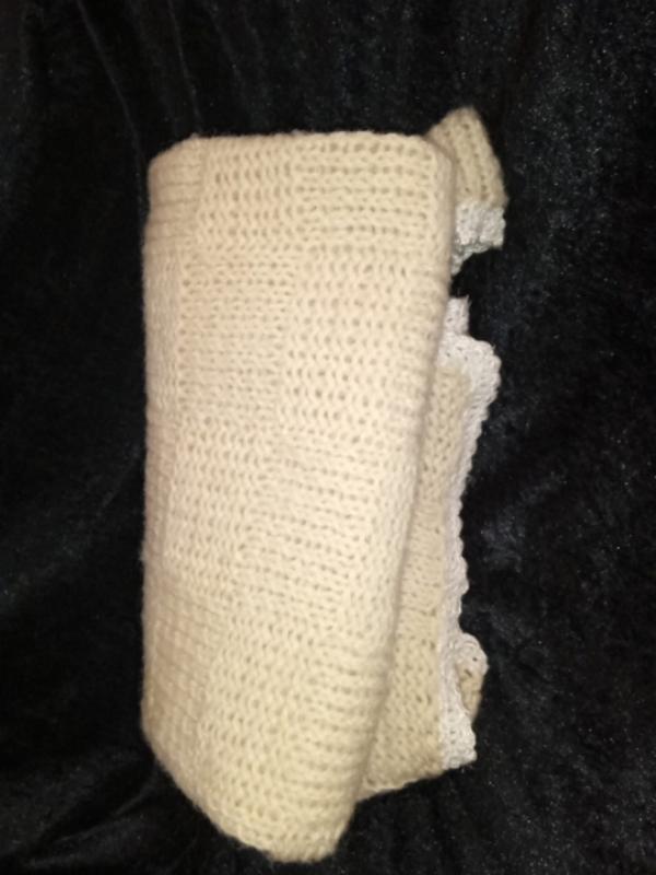 Связано для себя. Чистая шерсть. Особенности шерсти в том, что мокрая не остывает. Размер 107х145. Готово к использованию. Связано одной ниткой. Из одеяла получится свитер, а потом навязать носков. .