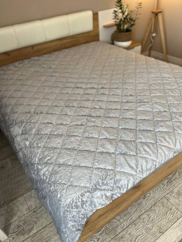 Ковдра - покривало стьобане Розмір 💌 200*220 см Наповнювач холофайбер З одного боку велюр з іншого боку мікрофібра всередині наповнювач холофайбер Виріб виконаний дуже якісно👌🏻 Виробник Україна🇺🇦