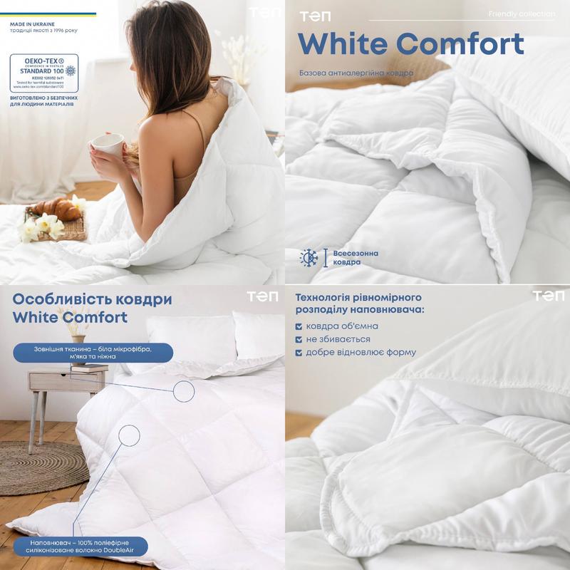 КОВДРА "WHITE COMFORT" Одеяло изготовлено из добротных материалов и качественного сырья. Она проста в использовании, не сбивается, хорошо восстанавливается после стирки. Внешняя ткань – белая микрофибра, хорошо пропускающая воздух и отводящая влагу. Наполнитель одеяла - антиаллергическое полиефирное волокно DoubleAir, объемное и легкое, хорошо удерживает тепло. Благодаря технологии равномерного распределения наполнителя и фигурной выстежке, наполнитель не сбивается, а одеяло долго служит. Одеяло простое в уходе: можно стирать в стиральной машине, оно быстро сохнет и сохраняет свои первоначальные свойства. 💛140x205 см - 790 грн 💛175х205 см - 890 грн 💛200х220 см - 975 грн