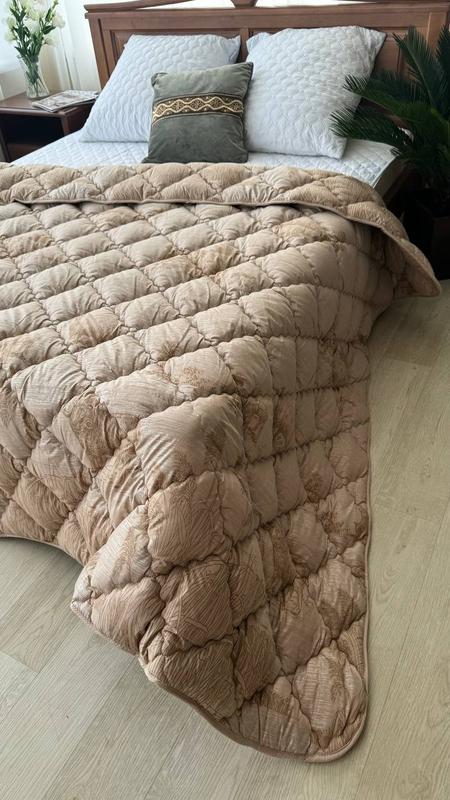 Характеристика ковдри ▫️Технология пошива : стеганое ▫️Материал чехла: микрофибра ▫️Наполнитель:шерстипон - 80% секонизированное волокно, 20% шерсть ▫️Плотность: 400 г/м2 ▫️Производитель: Украина/Хмельничный Одеяло из овчины - одно из самых популярных зимних, теплых одеял. Овечья шерсть отличный натуральный материал, за счет воздуха между шерстинками, легко задерживает тепло, выводит лишнюю влагу. Шерстяное одеяло не электризуется и соответственно не притягивает пыль. Под шерстяным одеялом всегда тепло и сухо. 🏷️Размеры: 145x210 см - 1250 грн 175x210 см - 1350 грн 195x215 см - 1550 грн
