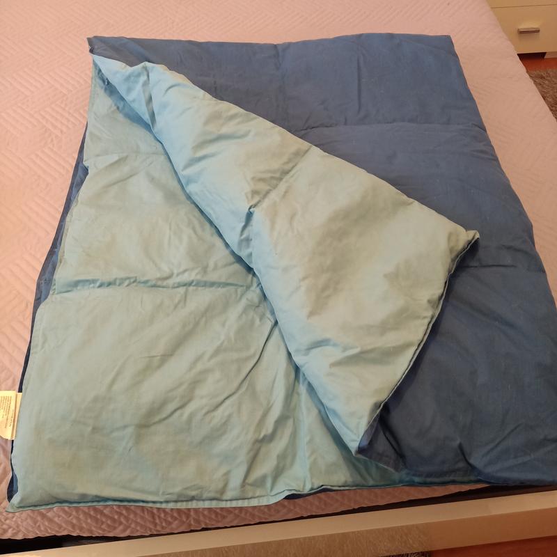 Одеяло пуховое, (гусиный пух)190х150,чехол 80,%полиэстер,20% хлопок,двухсторонний,(синяя,голубая)
