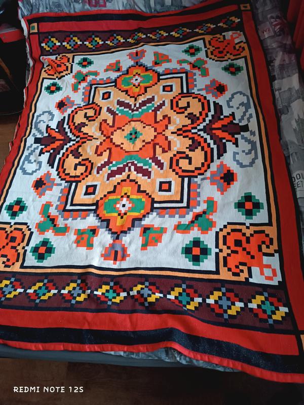 ручная работа вышита крестиком покрывало можно использовать на кресло, диван, кровать или как ковер на стену