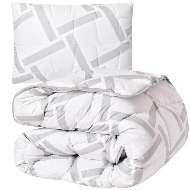 Производитель: Идея, Украина Комплектация: Одеяло 140*210 см + Подушка 50*70см на молнии Ткань: Микрофибра Наполнитель: Антиалергійне 100% силіконізоване мікроволокно високої якості (аналог лебединого пуху) Плотность: 300 гр/м2 Ексклюзивний, неймовірно елегантний набір ковдри та подушки. Унікальна розробка української фабрики «Текстиль 2000». Пошитий на сучасному обладнанні з дотриманням найвищого стандарту якості. Набір, що підійде і дітям, і дорослим. Розрахований на одну особу. Це може бути дитина від 5-6 років і старше. А також вже доросла особа, якщо немає потреби у двоспальному наборі. Купуючи набір ви отримуєте вигіднішу цінову пропозицію, ніж якщо купувати окремо кожен елемент. Оскільки вироби можна легко прати, набір можна використовувати без постільної білизни. Ковдра полуторна Легка, красива, елегантна. Всередині Elegantly має наповнювач штучний пух, який забезпечує гарну теплоємність та водночас хорошу повітропроникність. Під такою ковдрою буде затишно спати у різні пори року. Вона створить комфортну температуру для тіла і відведе зайве тепло. Штучний пух та ніжна на дотик приємна мікрофібра роблять ковдру майже невагомою. Вона не тисне на тіло вагою. Є антиалергенною та безпечною для здоров'я людей з найчутливішою шкірою. Ковдра Elegantly красива та об'ємна. Тканина верху білого кольору, має геометричний візерунок у вигляді умовних квадратів. Квадрати сірого кольору. Разом з ексклюзивною стібкою у вигляді крупних комірок цей візерунок складає дуже позитивне враження. Крупні елементи стібки дозволили зберегти об'ємність наповнювача і створили цікавий ефект для ковдри. Водночас надійно зафіксували наповнювач всередині кожної комірки. Краї ковдри оброблено декоративним кантом. На тканину нанесено фірмовий логотип IDEIA. Подушка Подушка з колекції Elegantly наповнена супер м'яким штучним пухом. Має стьобаний чохол, пошитий з мікрофібри з таким же принтом, як і ковдра. Стібка подушки та стібка ковдри однакові. Змінено лише розмір комірок. Це буде супер м'яка подушка, трішки підсилена чохлом зі стібкою. Вона добре тримає форму та відновлює її. В боковий шов вшита невелика блискавка.Увага! Задля збереження об'ємності подушки її слід збивати щоденно до сну та після сну. Переваги: Простий догляд. І ковдру і подушку Elegantly можна прати в сучасних пральних машинках. Застосовуйте делікатний режим при низькій температурі та делікатне віджимання на мінімальних оборотах. Вироби не всотують вологи. Швидко сохнуть в природних умовах. Вигідна ціна. Купувати набором вигідно. Ціна за набір вигідніша, ніж аналогічні товари окремо. Заощаджуються кошти на доставку. Антиалергенність. Матеріали, що використовуються для пошиття набору Elegantly є сертифікованими OEKO Tex. Безпечні для здоров'я, не здатні викликати алергію чи подразнення на чутливій шкірі. Ефектний вигляд. Колекція Elegantly справді красива і ефектна. Акуратно пошита. Відповідає визначенню - якісний домашній текстиль і стане чудовою прикрасою для спальні і ліжка. Компактне пакування. Пакування виробів дозволить зробити посилку максимально компактною. Набір на подарунок вашим рідним чи друзям. Вироблено в Україні: Набір Elegantly виготовлений у сонячному Миколаєві, що гарантує високу якість виробу та підтримує українського виробника.
