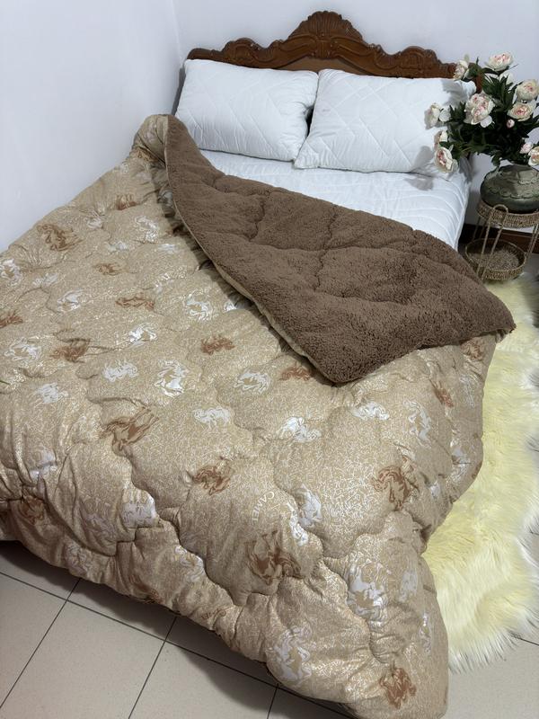 Очень практичное и теплое одеяло с открытым мехом. Оно имеет уникальные антибактериальные и согревающие свойства, пропускает воздух, имеет эффект терморегуляции, с помощью которого поддерживается оптимальная температура тела, создает уютный микроклимат и прекрасно удерживает тепло. В данной модели шерстяного стеганного одеяла используется наполнитель шерстепон плотностью 450 г/м.кв. Шерстепон - это смесь натуральной верблюжей шерсти и силиконизированного волокна. При таком сочетании наполнитель наследовал лучшие качества обоих составляющих: высокую гигроскопичность шерсти, способность сохранять тепло синтепона, а по причине присутствия искусственных волокон одеяло становится более мягким, податливым, снижается его аллергенность. Характеристики одеяла: - Размер: - Полуторное 145/210 см - Цвет: бежевый - Материал: микрофибра - Производитель: TM Леримакс (Украина) - Упаковка: ПВХ-сумка