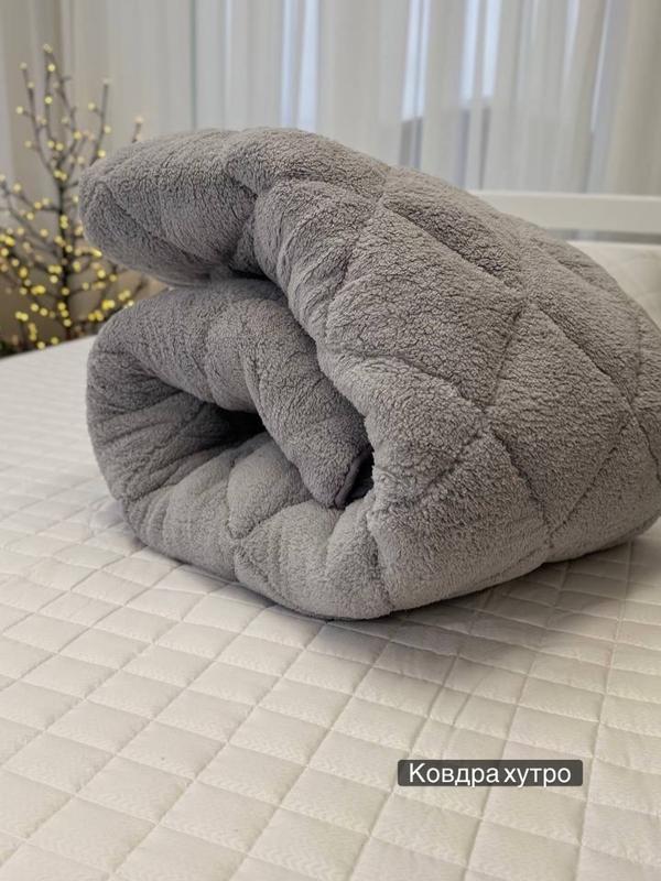 ▪️Ковдра хутро Верх: штучне хутро Низ: мікрофібра з видавкою (пупиришки) Наповнювач: холофайбер Щільність: 350г/кв.м Виробник: м. Хмельницький 🏷️Розміри: 155х210 - 1100 грн 180x210 - 1295 грн 200x210 - 1400 грн