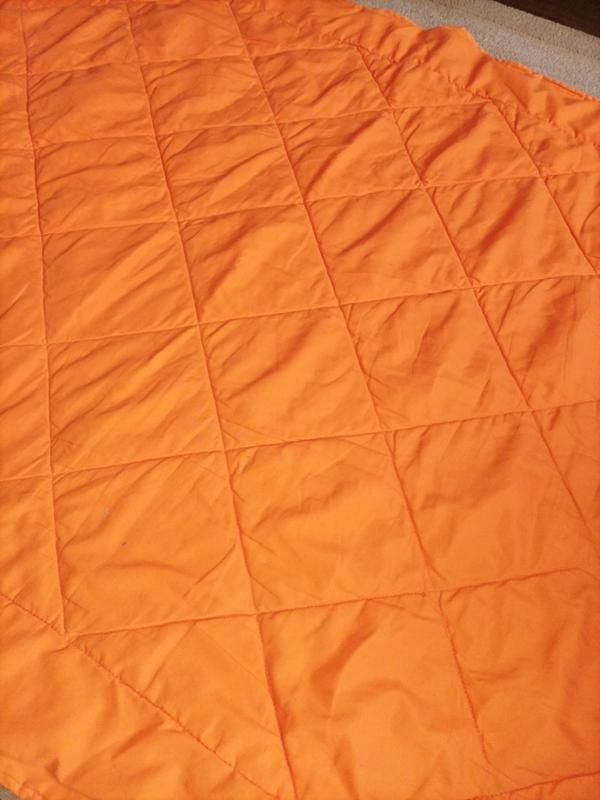 одеяло демисезон яркооранжевого цвета прострочена начинка- синтепон..у отличном состоянии без повреждений и пятен 130/200