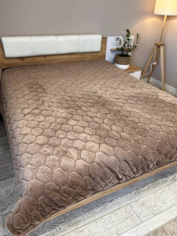 Плед- покривало Шиншила Изысканный двухсторонний велюровый плед-покрывало «Шиншила» с густым теплым ворсом. Покрывало из искусственного меха с велюровой фактурой, чрезвычайно мягкий и приятный на ощупь, достаточно плотный и слегка пушистый, отлично сохраняет тепло. Плед двухслойний, прошитий по всьому периметру, зворотня сторона - х/б основа в тон до верху. Можно стирать вручную или в стиральной машине на деликатном режиме. 🏷️Размер : 210х230 см Упаковка : фирменная сумка с ручками