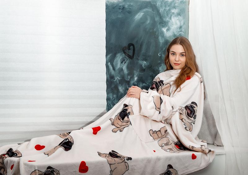 Плед с рукавами из микрофибры бульдог 200х160 см