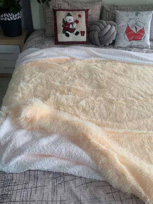 Плед с длинным ворсом травка + овчина евро размер😍 Размер: 210х230 см. Состав: полиэстер 100% Виробник: Китай Удивительный мягкий плед из искусственного меха + эко овчина Нежная ткань этого изделия так напоминает натуральный мех, что если дунуть на него, то ворсинки скатываются, как живые перышки, мягкие, гладкие и блестящие. На ощупь покрывало очень приятное, нежное, прохладное, оно будто струится у вас в руках! Одна сторона – из длинного пушистого ворса, другая – мягкая эко-шерсть.