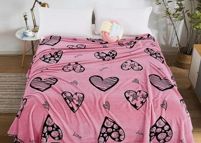 Плед-покрывало из флиса розовый полуторный сердца 160х210 см