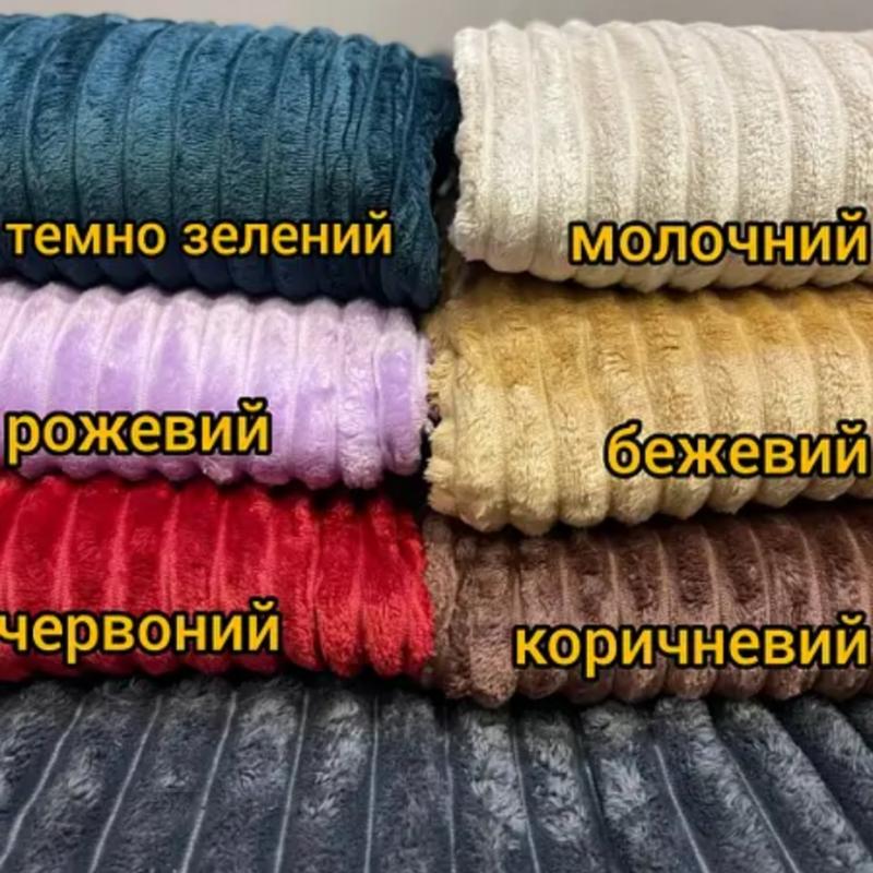 розміри: полуторний 140 на 200 см. - 450 грн двоспальний 175 на 200 см. - 500 грн євро 200 на 220 см. -550 грн Якість: Бамбукове волокно Щільність: 350 г/м2. Ширина смужки: 2,5 см. Полотно еластичне, має високу міцність, повітропроникне та чудово зберігає тепло. Має легку вагу і чудово піддається як ручному, так і машинному пранню в делікатному режимі. Швидко сохне і змінює початкову свою форму. Після багатьох прань не линяє та збереже насиченість фарб. Покривало підійде для вашого інтер'єру та чудово підійде на ваше крісло, диван, ліжко.