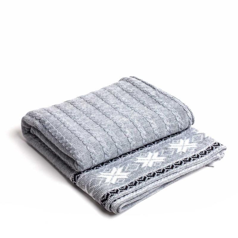 Плед вʼязаний етно 140*180 сірий з орнаментом